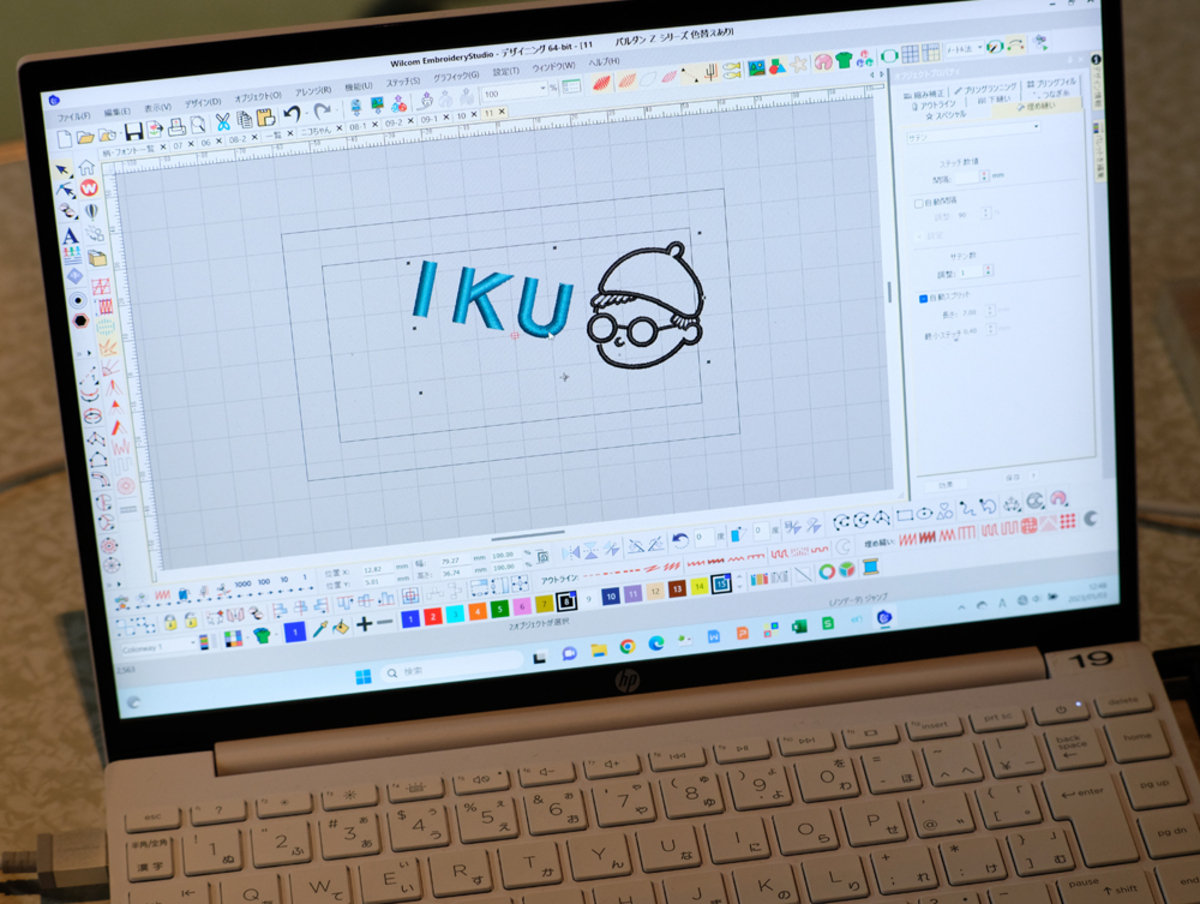 図柄デザインは、PDFやAIデータのほか、手書きデータなどからも刺繍型を作成することが可能です。試打ちを繰り返しながら、刺繍データを修正することにより、ご希望のデザインにできる限り近づけた精密な仕上がりを