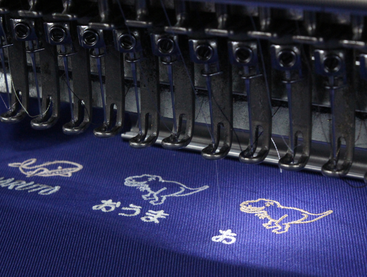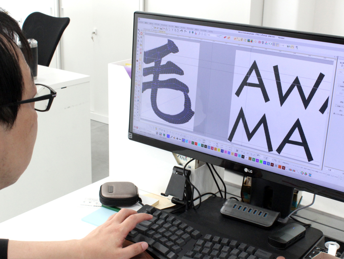 弊社で生産する刺繍加工は、基本すべて社内でデータの作成を行っています。素材や柄によって、ピッチを変えたり下打ちの入れ方を変えることによって、より繊細な図柄を表現することが可能です。