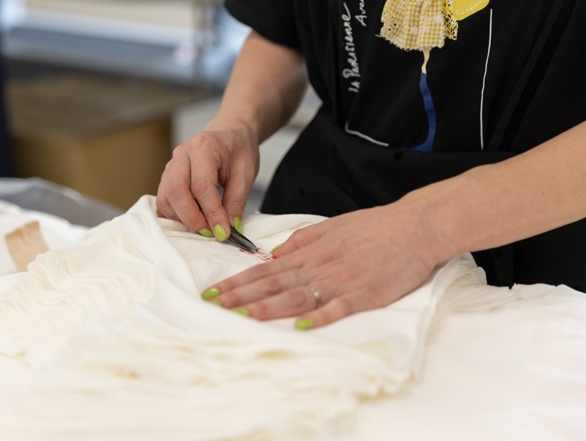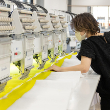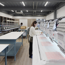 刺繍をはじめ縫製、プリント加工、ビーズ付けなどの手加工も一貫製造が可能です。 -