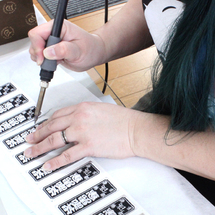 弊社で生産する刺繍加工は、基本すべて社内でデータの作成を行っています。素材や柄によって、ピッチを変えたり下打ちの入れ方を変えることによって、より繊細な図柄を表現することが可能です。