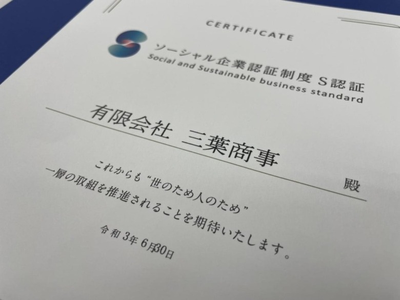 ソーシャル企業認証制度(S認証)に認証されました!!