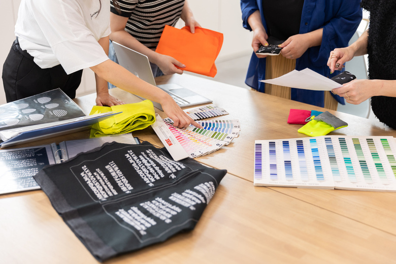用途、数量、デザイン、納期を確認し、ご希望の内容をしっかりと共有しながら進めさせていただきます。企画段階から「刺繍表現」「量産可能な加工方法」「素材との相性」など、細かな部分までご希望をお伺いし、ご提案させて頂きます。必要に応じて、事前テストや試打ちも行います。