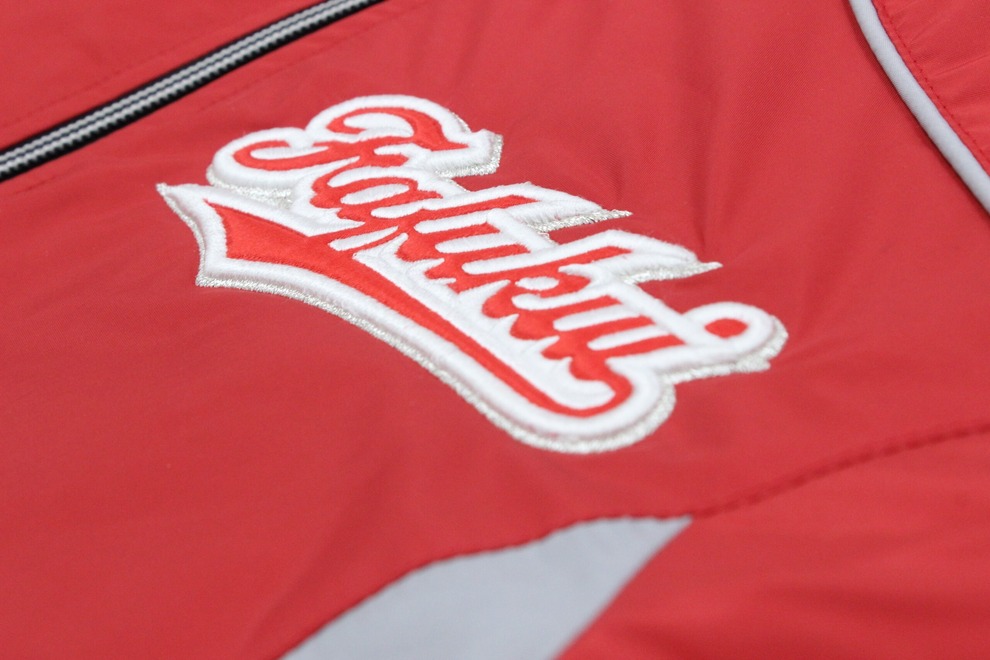 舞鶴市の舞鶴市立福井小学校グランドで活動されているFA福井少年野球クラブ様より、グランドコートへの刺繍入れのご相談を頂きました。 銀糸で外枠の刺繍を施した後に、ウレタン加工で立体的に、 「Fafukui」の文字は、赤い生地のアップリケをウレタンと刺繍の間に挟み込んで仕上げました。