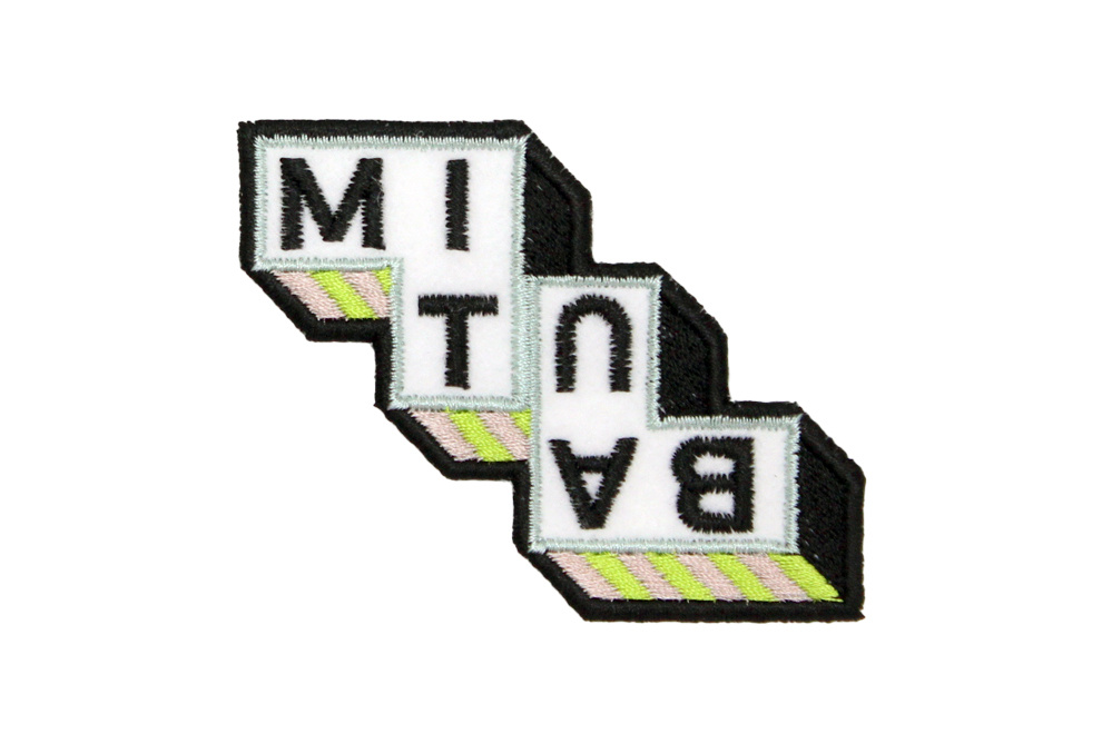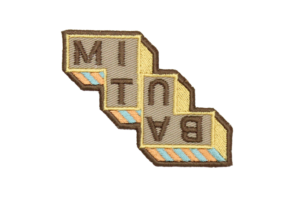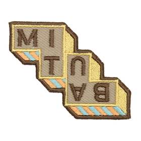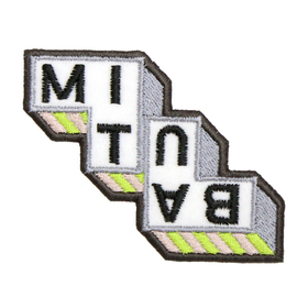 ゴシックのベーシックなフォントと、ブロック型のユニークな形が特徴のあるワッペン。配色で見え方が大きく変わります。